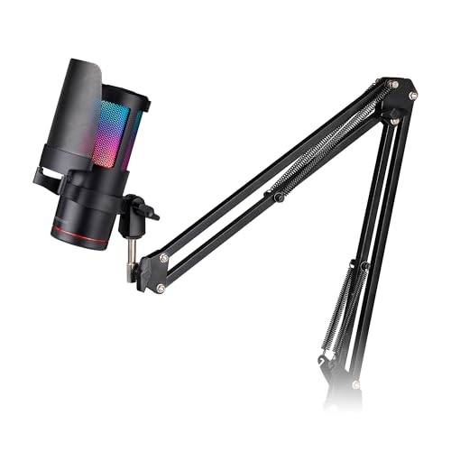 TONOR RGB USB Mikrofonkit, Gamingmikrofon, Podcastmikrofon, Stänga av ljud vid Streaming, Kardioid Kondensator Datormikrofon, Studiomikrofon med Armstativ TC40 RGB
