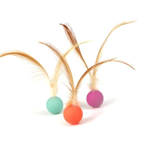 DONGKER Kattbollar fjäderleksak, 3 st interaktion mjuk katt studsbollar med fjäder hög studs för katter inomhus och utomhus lek tuggning klösträning