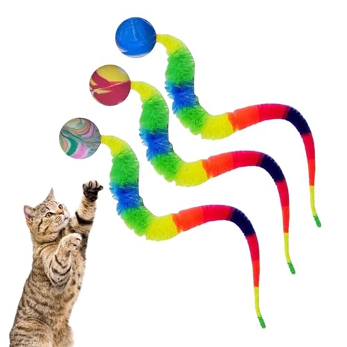 Kattleksaker Bollar för innekatter,Bolar för katter - Kattunge studsboll med svans | Hoppboll med svans kattleksaker, interaktiva bollleksaker för kattungar, studsbollar för katter, 3 st