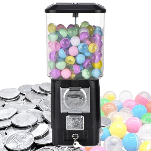 Godisautomater, myntdriven tuggummimaskin, 200 tomma bollar, 100 polletter i rostfritt stål, myntdriven tuggummibollsbank for leksakskapslar, studsbollar, godis, for spelbutiker(Black)