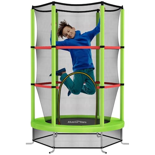 HOMCOM Studsmatta för barn Ø 1,40 x 1,90 H m säkerhetsnät, dragkedja, 6 vadderade stolpar ingår, maximal belastning, 45 kg, grön