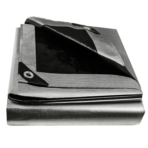 Presenning tygpresenning 4 m x 4 m grå/svart 180 g/㎡ vattentät presenning med öljetter, skyddspresenning båtpresenning vedpresenning för trädgårdsmöbler, poolskydd, studsmatta, takpresenning,