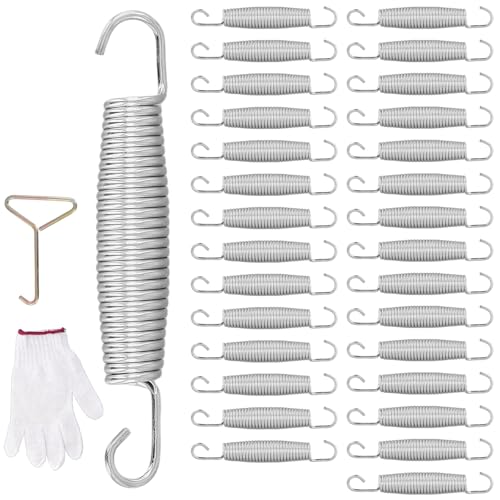 UNGFEI 30 st 14 cm studsmattsfjädrar ersättningskit för 2,4 m/3,7 m/3,7 m/4,5 m/15 fot, fitness studsmatta fjädrar med krokar och handskar, för hoppning, uppstudsning, skybound