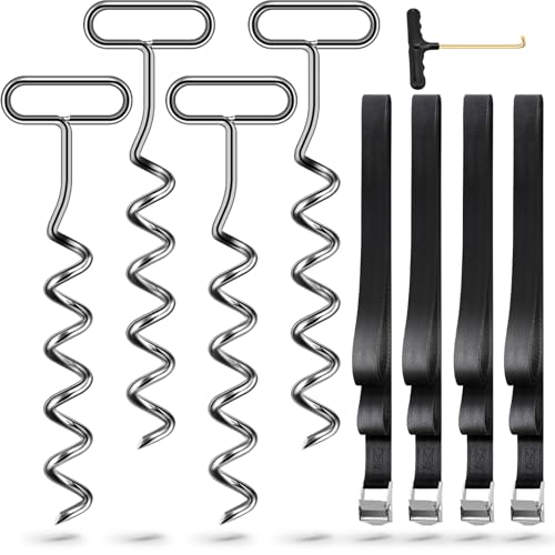 BOOSHMall Golvankare studsmatta set om 4, jordankare studsmatta, markankare för vridning, resistent, hög vind, studsmatta, ankare för tält, gungor, skärm