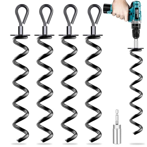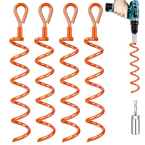 DBREAKS Golvankare, 4 stycken studsmatta, markankare med spiralborr, 15 tums studsmatta, fästning, markankare, gungset ankare, för tält, skjul, gungor, studsmatta