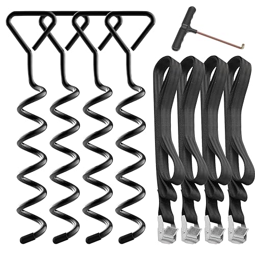 Markankare för Studsmatta - Set om 4 Med 4 Remmar (2,5 m Längd) - Tung Markankare för Utomhusbruk, Tål Hög Vind