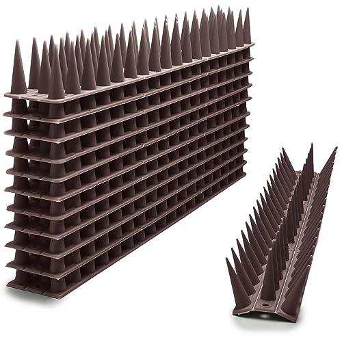 EWENYS Fågelspikar, remsor 4 m (14 fot) × 3, plastvägg och staket höga spikar, försvarare katt räv fågel duva avskräckande anti-klättring för staket studsmatta utomhus (brun, 12 st)