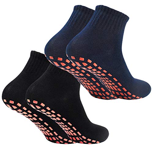 NATUCE 2 par halkfria greppstrumpor för kvinnor ABS sportstrumpor för yoga pilates barre studsmatta fitness kampsjukhus hem promenadstrumpor med grepp, Svart/Marinblå, 40.5-43.5 EU