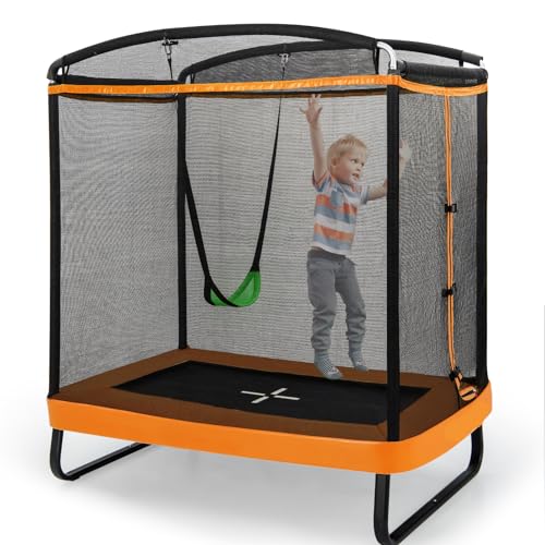 LIFEZEAL Barnstudsmatta, studsmatta för barn, studsmatta med nät och dörrskyddsnät, perfekt för inomhus och utomhus (orange)