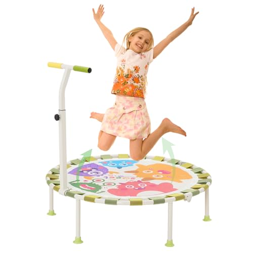 NUKied Studsmatta för barn, 96 cm, studsmatta inomhus, hoppande studsmatta, fitnessstudsmatta med justerbart skumhandtag och säkerhetskudde, för pojkar och flickor från 2-3-4 år
