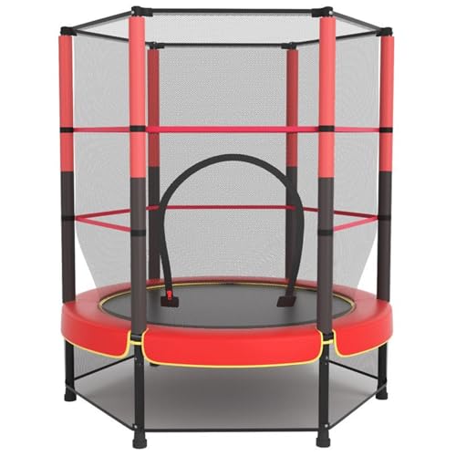 NUKied 145 cm barn studsmatta stor studsmatta för barn vikbar fitnessstudsare med säkerhetsinhägnad nät och dyna med dragkedja ram skydd kraftig hoppträning inomhus utomhusaktiviteter (rosa)