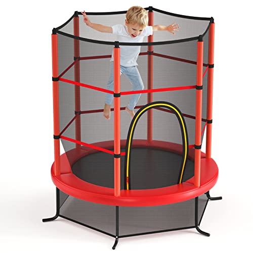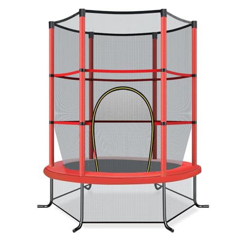 COSTWAY Ø 165 cm trädgårdsstudsmatta med säkerhetsnät, studsmatta kan belastas upp till 135 kg, inomhus/utomhus studsmatta för barn från 3 år (röd, Ø 165 x 191 cm)