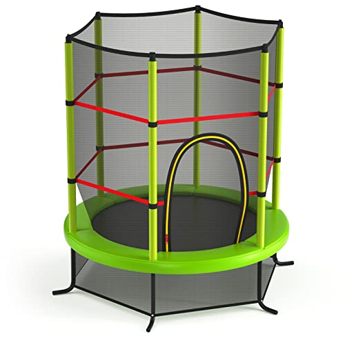 COSTWAY Ø 165 cm trädgårdsstudsmatta med säkerhetsnät, studsmatta kan belastas upp till 135 kg, inomhus/utomhus studsmatta för barn från 3 år (grön, Ø 165 x 191 cm)