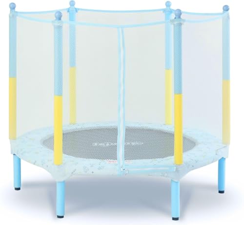 LIFEZEAL Barnstudsmatta, studsmatta för barn, studsmatta med nät och dörrskyddsnät, perfekt för inomhus och utomhus (blå)
