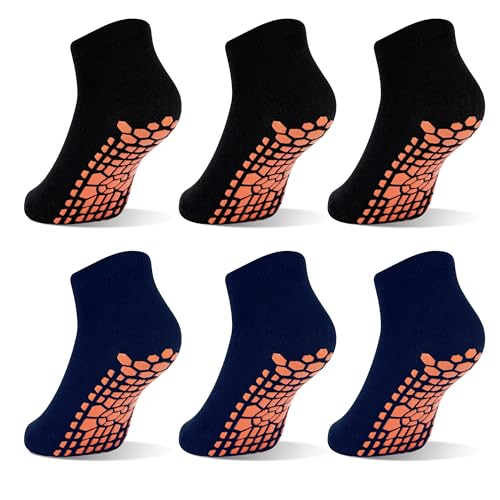 GRPSKCOS Halkfria barnstrumpor – 6 par studsmatta halkfria strumpor klibbiga grepp inomhus andningsbara strumpor för pojkar flickor barn 2-13 år, 02 Svart*3+Mariny*3, 10-13 Years