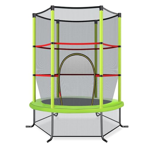 Ø 165 cm studsmatta med säkerhetsnät, trädgårdsstudsmatta kan belastas upp till 135 kg, inomhus/utomhus studsmatta för barn från 3 år (grön, Ø 165 x 165 cm)