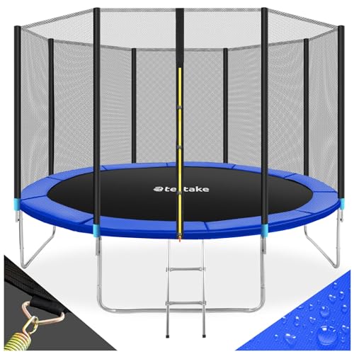 tectake® Studsmatta med Skyddsnät för Barn och Vuxna, Slitstark med Starka Stålfjädrar för Höga Hopp, Vadderade Nätstolpar, Kantskydd, Stege, Enkel Montering, Studsmatta Utomhus/Inomhus - 366 cm