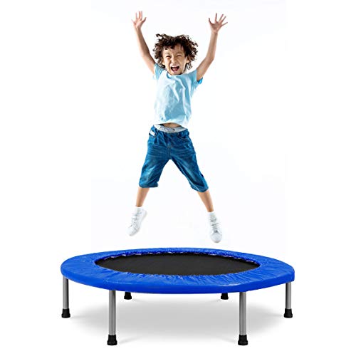 GOPLUS Vikbar studsmatta, barnstudsmatta av stål, konditionsstudsmatta kan belastas upp till 100 kg, vikbar studsmatta med halkfria fötter, för fitness, viktminskning, för inomhus (mörkblå)