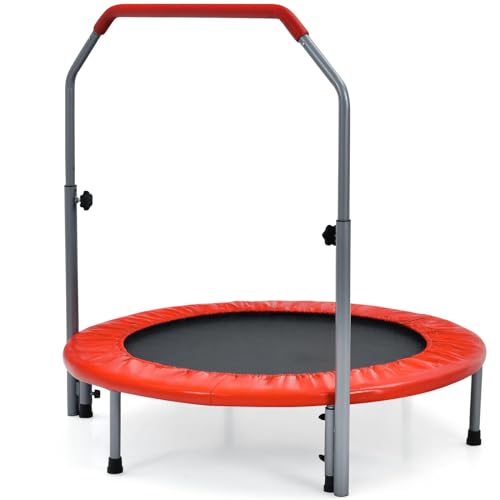 COSTWAY 101 cm ministudsmatta, vikbar studsmatta, barnstudsmatta med höjdjusterbart handtag, trädgårdsstudsmatta kan belastas upp till 150 kg för vuxna och barn (röd)