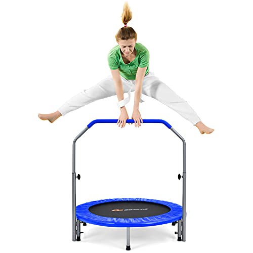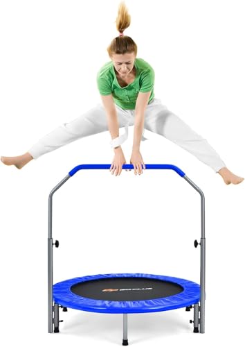 RDTOK Fitness studsmatta, vikbar ministudsmatta inomhus 106 cm med 3-vägs höjdjusterbart handtag, extra stabil X-ram 275 kg lastkapacitet studsmatta