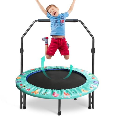 Forroby Studsmatta för barn, 36 tum mini barnstudsmatta med justerbart handtag, barnstudsmatta med vadderat säkerhetsskydd, studsmatta för hoppsporter inomhus eller utomhus (grön)