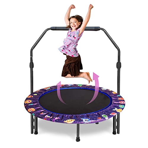 Forroby Studsmatta för barn, 36 tum mini barnstudsmatta med justerbart handtag, barnstudsmatta med vadderat säkerhetsskydd, studsmatta för hoppsporter inomhus eller utomhus (lila)