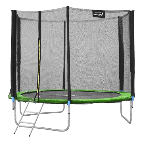 HyperMotion trädgård studsmatta för barn 3+, studsmatta med stege och nät inomhus för hem och trädgård, lekplats utrustning, barnstudsmatta, dubbla fötter, 305 cm 10 ft