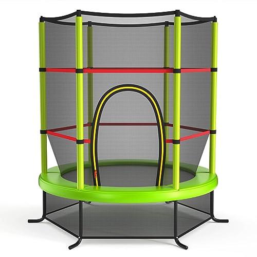 KOMFOTTEU Studsmatta för barn 3-6 år, barnstudsmatta med säkerhetsnät, utomhus trädgård elastisk säng med dragkedja, 135 kg last, 165 x 165 x 161 cm (grön)