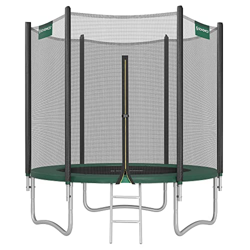 SONGMICS Utomhus studsmatta barn diameter 183 cm, externt skyddsnät, säkerhetskuddar, stege, 180 cm hög rak stolpe, stålram, svart och grönt STR061C01