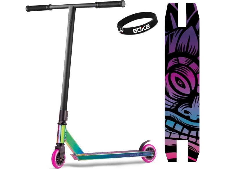 Stunt Scooter SOKE PRO | krom-sparkcykel med ABEC 9 | kullager sparkcykel vuxna och barn SOKE | olika mönster kan väljas