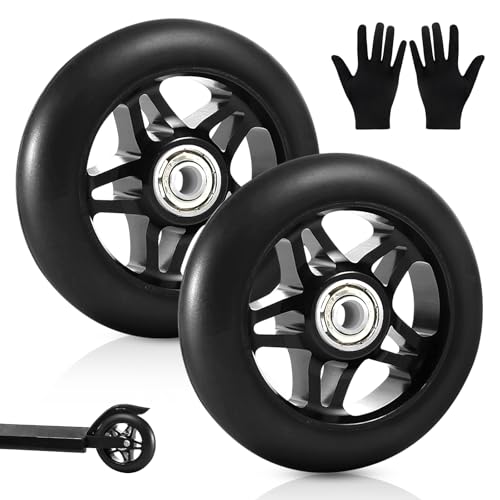 Stunt Scooter hjul 100 mm, 2 stycken reservhjul, skoterhjul med ABEC, 9 lager aluminium ekkärna för skoter, gungbilar extrema bilar