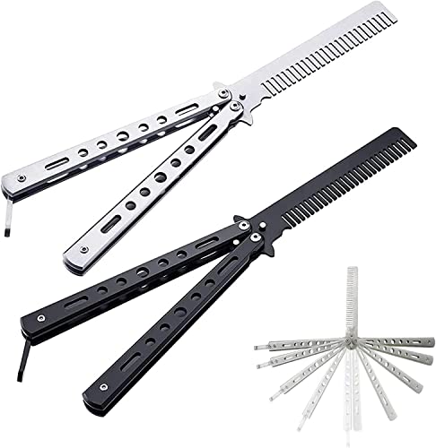 Cutefly Fjärilskam i metall, 2 stycken, rostfritt stål, fjärilskam, vikbar fickkam, fjärilsstil, kam för män, styling, hår, barberkam, hårstyling (silver/svart)