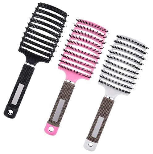 KOMUNJ 3 stycken ventilerade utredande hårborste vildsvinborst böjd hårborste, för lång, fin, tjockt, lockigt hår, detangler, styling hår borste set