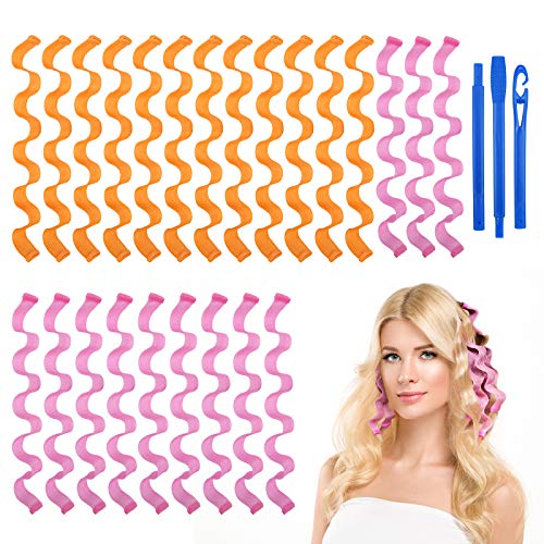 FEPITO 36-pack magiska locktång, spirallockar, våg, styling, hårrullar, kit, ingen värmelocktång och stylingkrokar för alla hårlängder, 55 cm/22 tum