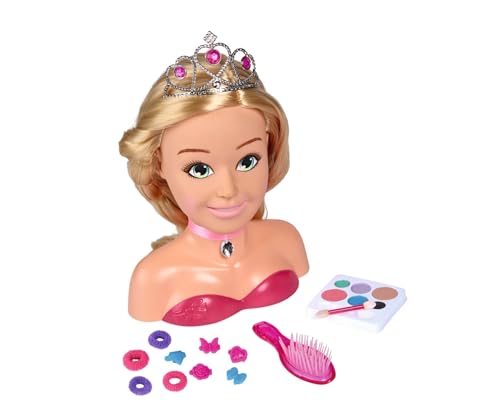 Simba 105560177 – Steffi Love Girls Princess makeup & frisörhuvud, stylinghuvud med makeup, 5 x hårklämmor, 4 x hårnoppor, borste och prinsesstiara, över 15 stycken, 26 cm, från 5 år