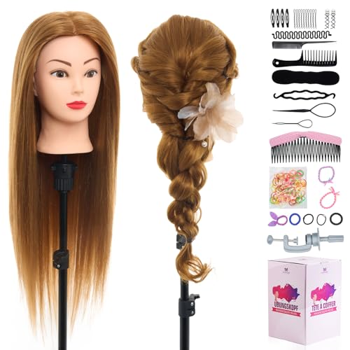 Auzass Frisörhuvud, 66cm Stylinghuvud 100% Syntetiskt hår Professionell Träningshuvud Mannequinhuvud med Bordsklämma+ Hårtillbehör