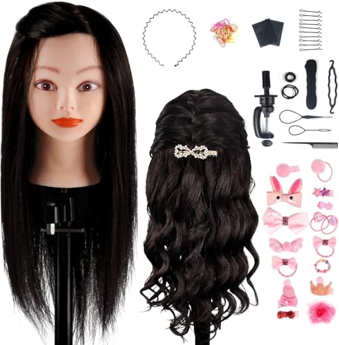 Twowin 80% verkligt hårträninghuvud, 22 "Stylinghuvud för frisör kosmetologi mannequin manikin huvud med klämstativ, Olika hårtillbehör, Present