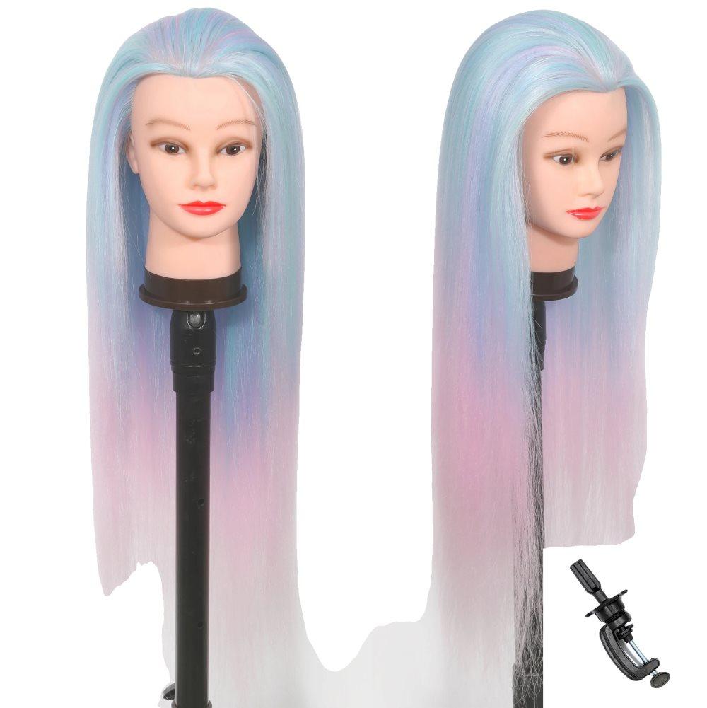 Frisörhuvud, DanseeMeibr 66cm mjuk Stylinghuvud 100% Syntetiskt hår Professionell Ombre Dockhuvud Träningschef Mannequin huvud med Bordsklämma+ Hårtillbehör