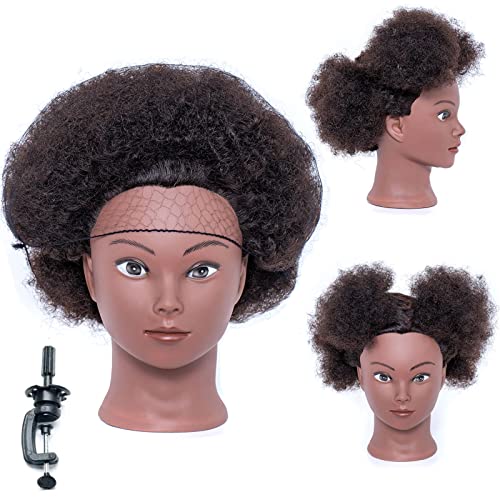 Träningshuvud afro-skyltdocka huvud av 100 % stylinghuvud för flätning, träningshuvud med hållare träning dockhuvud (20 cm)