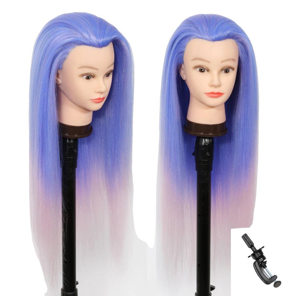 Stylinghuvud, syntetiskt hår, träningsverktyg,Lila rosa