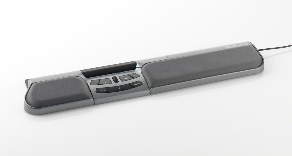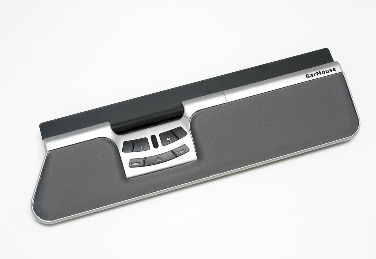 Ergonomisk mus, BarMouse styrdon, silver, 2st handledsstöd. Ly