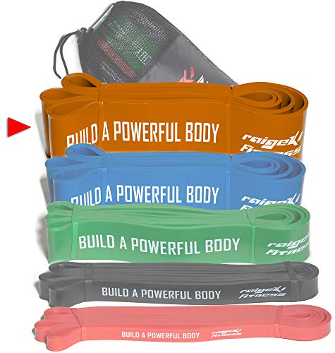 Raigeki Fitness motståndsband, gummiband (+ träningsplaner) [individuellt och set] långa motståndsband, träningsband för styrketräning – träningsband, terrängband, gymnastikskor (orange (40–100 kg))