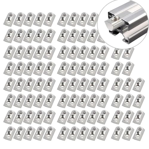 EYPINS Inrullningsbara fjädrar, M6, T-mutter, metallprofil, spårmutter, 8 rullar, boll, elastiska muttrar med styrplatta för aluminiumprofil 3030, 3060 (galvaniserat stål), 8 mm, 100 st