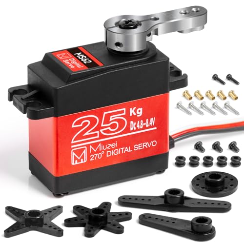 Miuzei Servo 25 kg 270° RC Digital Servomotor vattentät metallväxellåda motor modellbygge för Arduino bil 1/10 1/8 1/12 robot arm flygplan 8,4 V HV High Speed Torque Micro styrservo med kabel 25T horn