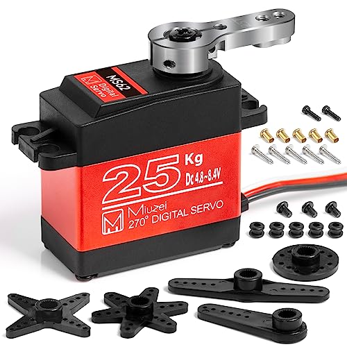 Miuzei Digital Servo 25 kg styrservo vattentät High Torque metallväxellåda 270 graders servomotor för mini RC bil 1/8 1/10 1/12 robot presenning båt med 25 T horn servokabel skruvar 2 stycken