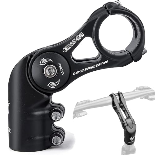 GEWAGE Justerbar Styrstam MTB/Landsväg/BMX – Styrlift -130° till +90°, 75/95/130 mm, 31,8 mm, 3D-smidd aluminium – För sportig cykling & bekväma turer (A825-75)