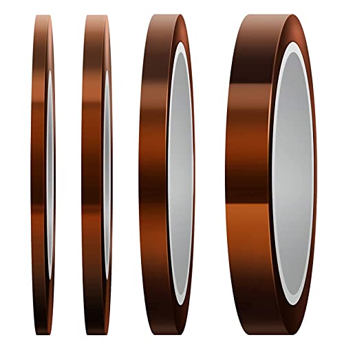 LUTER 4 rullar värmebeständig tejp med hög temperatur polyimid tejp för sublimering, 3D-skrivare, vågsvetsning (3 mm/5 mm/8 mm/12 mm x 33 m, fawn)