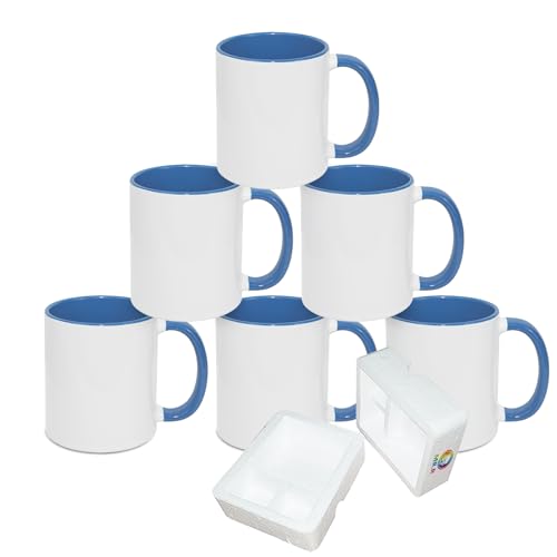 MR.R sublimering tomma diskmaskin keramiska kaffemuggar med blå färg mugg inre och handtag kopp mugg för mjölk te cola vatten, 325 ml, set med 6