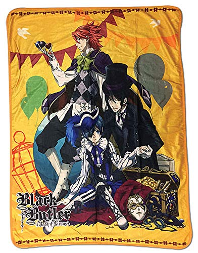Stor österländsk underhållning svart butler B.O.C. -CIEL, Sebastian och joker sublimering filtfilt, bomull, flerfärgad, 127 x 152,4 x 1 cm