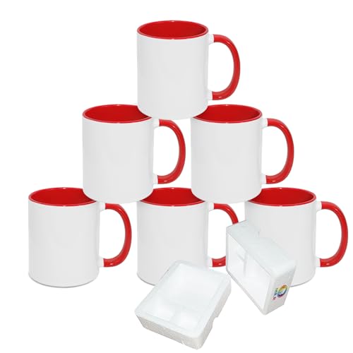 MR.R 325 ml sublimering tomma kaffemuggar, kopp tom vit mugg kopp med röd färg mugg inre och handtag, set med 6